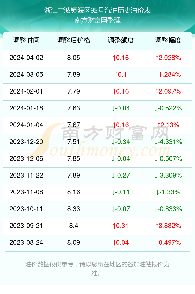 本文旨在為廣大車(chē)主提供關(guān)于寧波地區(qū)92號(hào)汽油的最新價(jià)格動(dòng)態(tài),深入分析油價(jià)波動(dòng)的原因及影響因素,并預(yù)測(cè)未來(lái)可能的趨勢(shì),以下是詳細(xì)內(nèi)容: